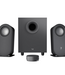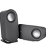 Dual-Position Speakers: Sleek, oval-shaped satellites in graphite gray can stand tall or lay flat under a monitor, maximizing your desk space without sacrificing sound.